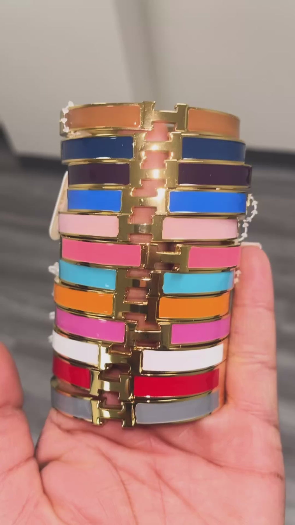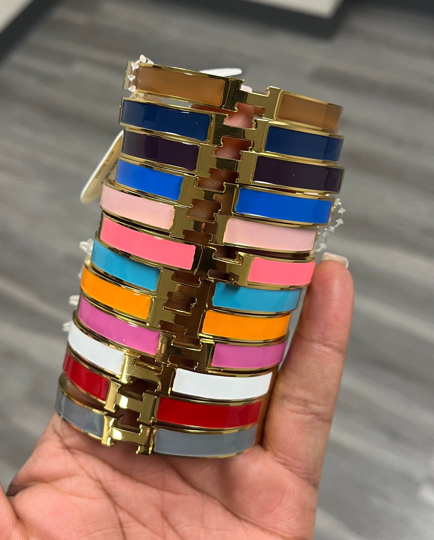 Stainless Steel Monogram H Enamel Hinged Bracelet